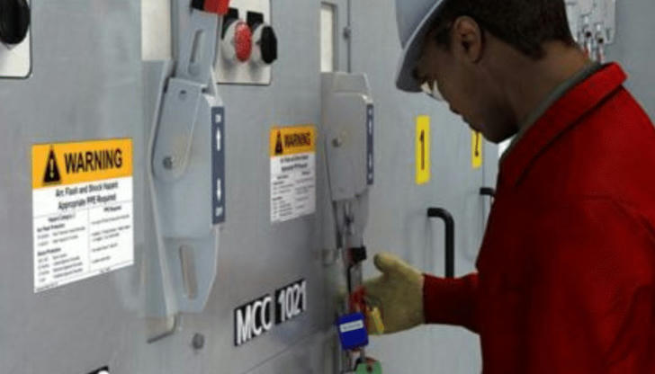 Correct Incorrect El bloqueo/etiquetado se aplica durante trabajos eléctricos. Aislar las fuentes de energía previene arranques accidentales, cumpliendo con las regulaciones de OSHA.